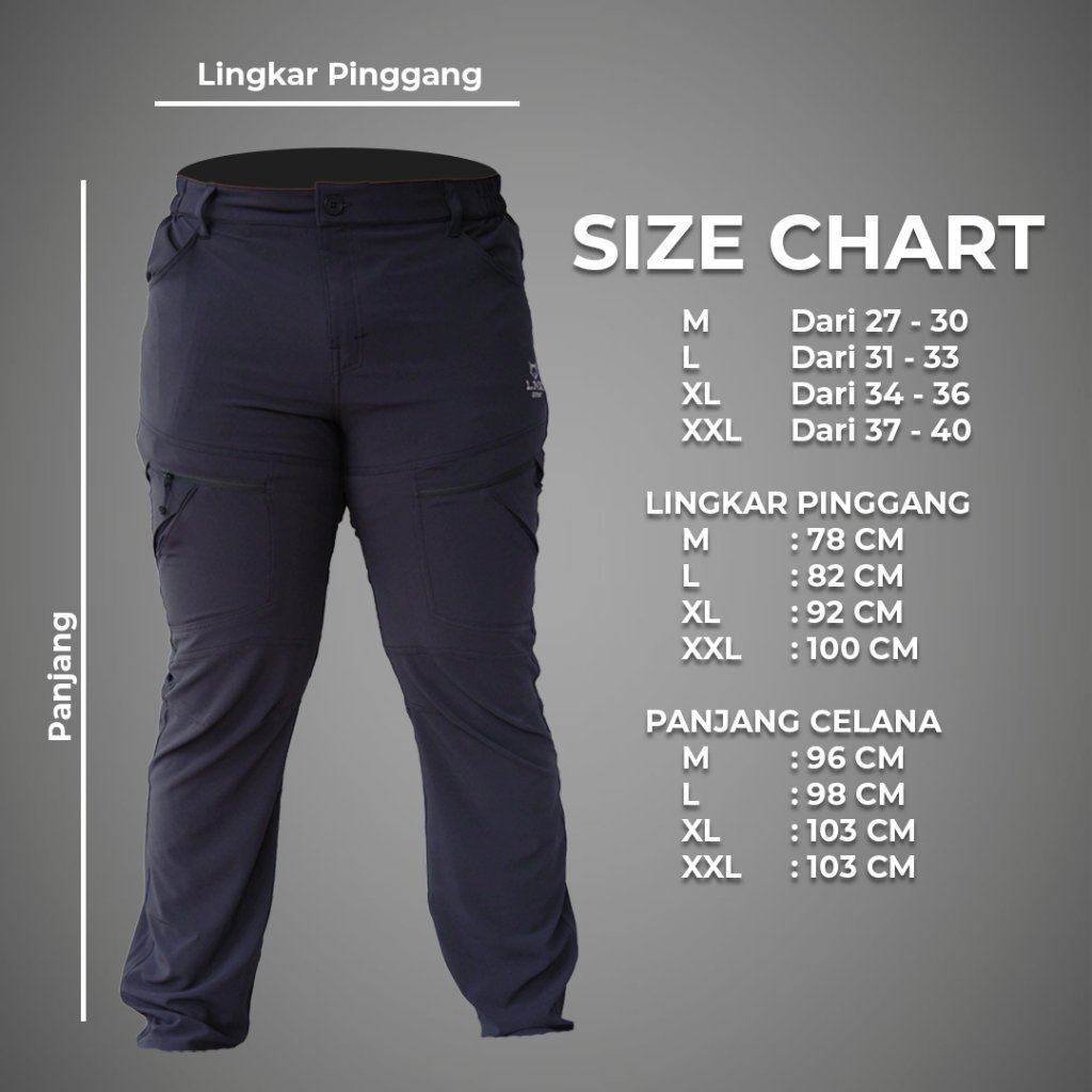 LNX Gear Celana Panjang Outdoor Gunung Quickdry Palguna Series Quickdry material dan strech, menjadikan celana ini sangat praktis , ringan dan anti bacteri. Dengan 5 Saku untuk keperluaan penyimpanan yang efektif dan lebih lebar SPESIFICATIONS : * 2 Side Pocket * 2 Front Pocket with Zipper * 1 Back Pocket with Zipper * Embordir Logo * Water Repellent Material * 4 ways stretch Fabrics * Elastic Waist * Reguler Fit Size chart S = Lingkar pinggang : 70cm | Panjang 98cm setara celana 25-27 M = Lingkar pinggang : 72cm | Panjang : 100cm setara celana 27-30 L = Lingkar pinggang : 80cm | Panjang : 100cm setara celana 31-33 XL = Lingkar pinggang : 92cm | Panjang : 102cm setara celana 34-36 XXL = Lingkar pinggang :104 | Panjang : 106cm setara celana 37-40 Warna Hitam Saja