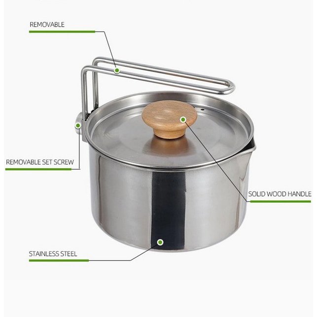 Teko Panci Stainless Steel Nesting Kettle Outdoor Camping Pot Alat Masak Camping