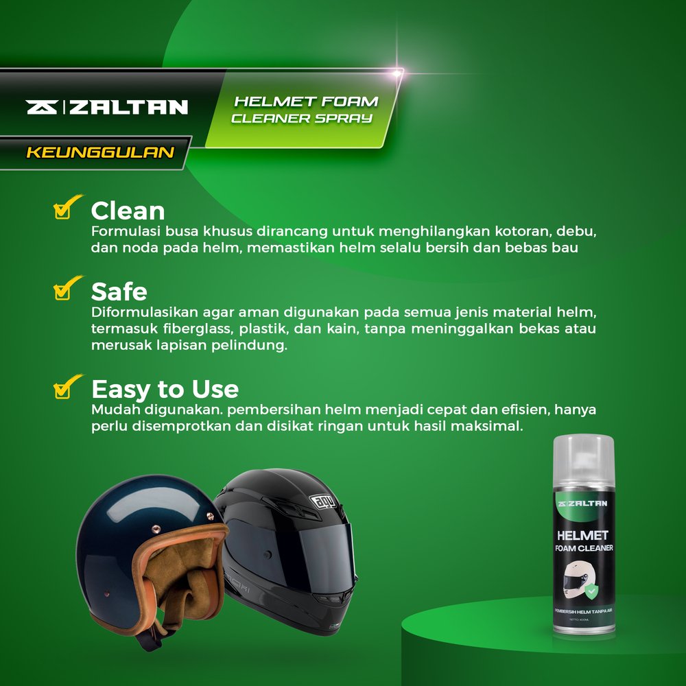 Gunakan Zaltan Helmet Foam Cleaner agar helm tetap bersih, nyaman, digunakan, sehingga meningkatkan pengalaman berkendara Anda.
